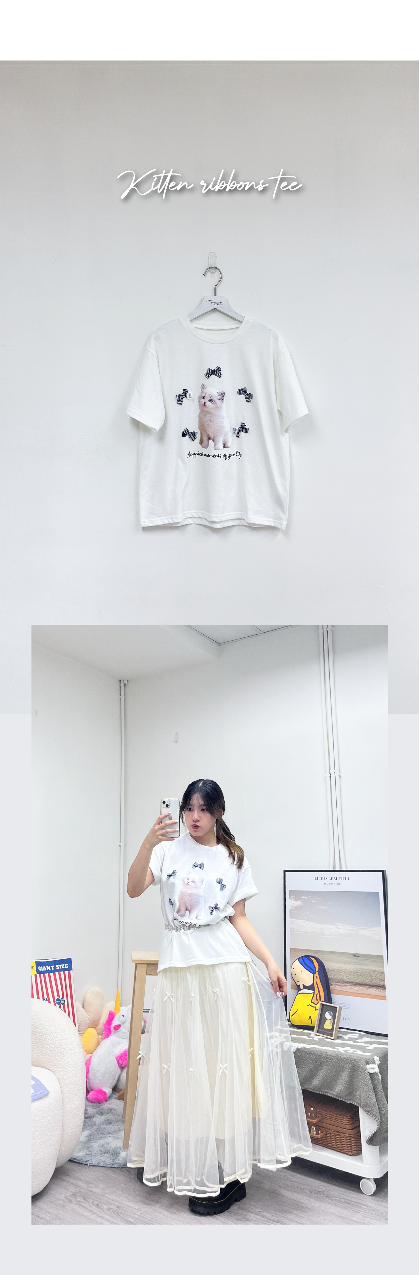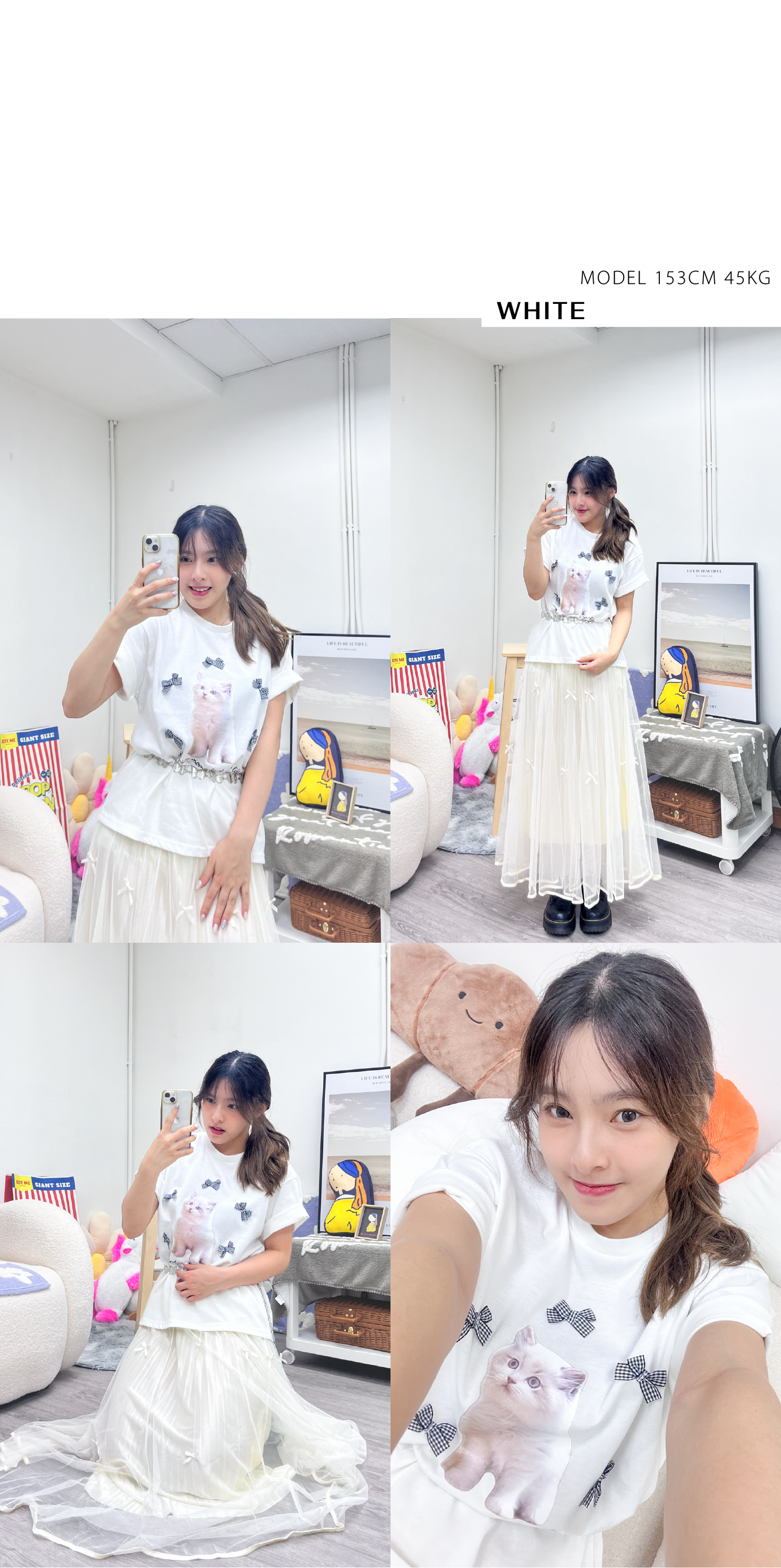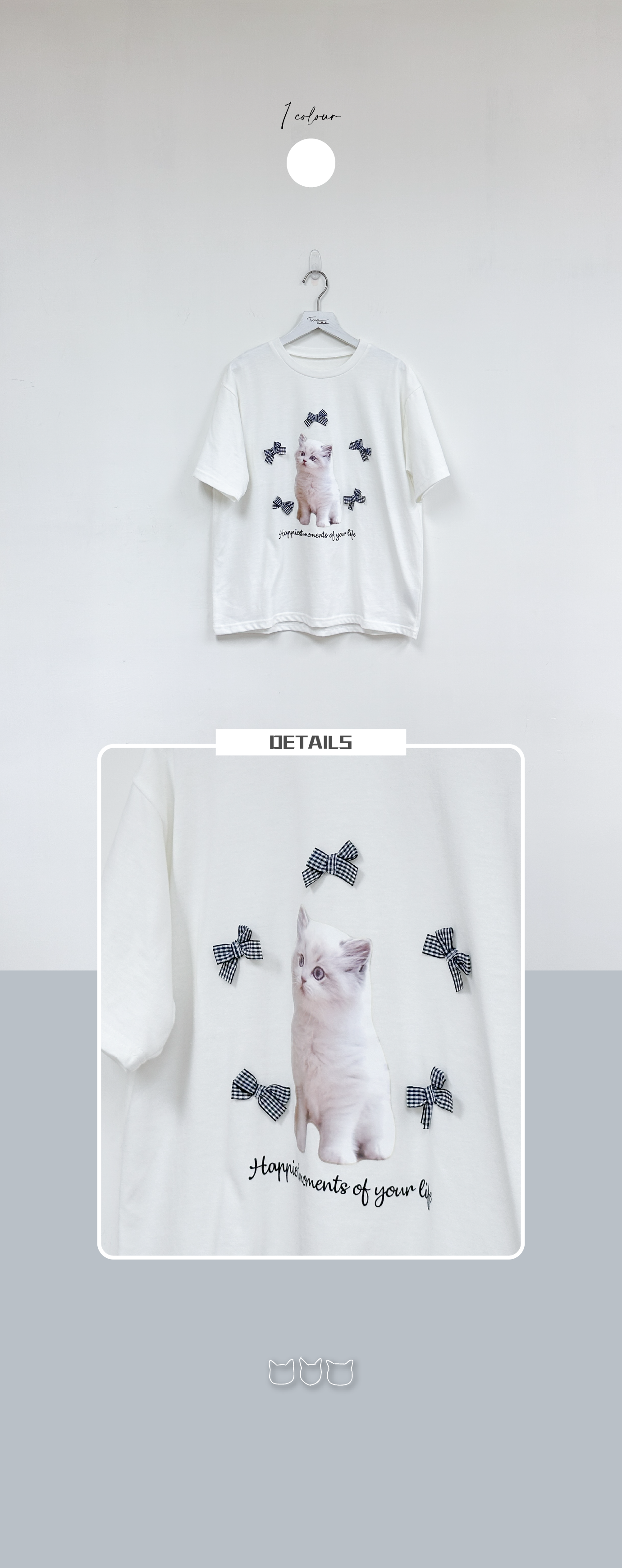 可愛貓貓黑白蝴蝶結TEE