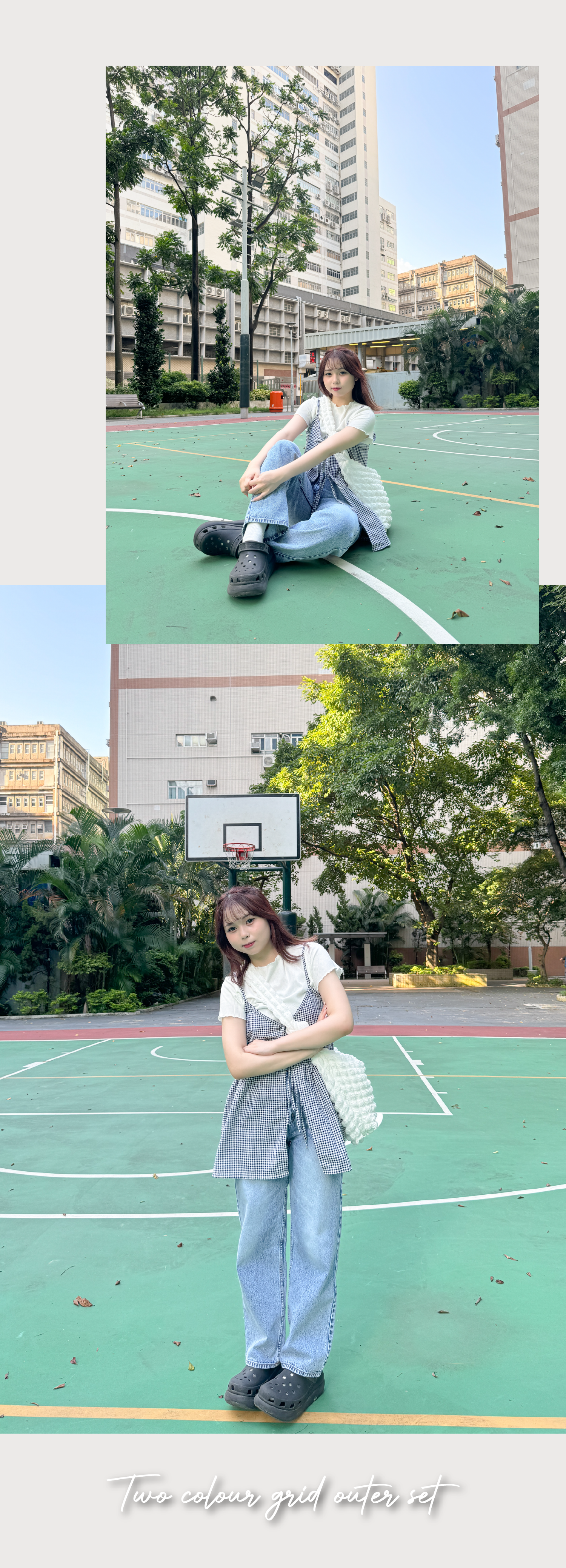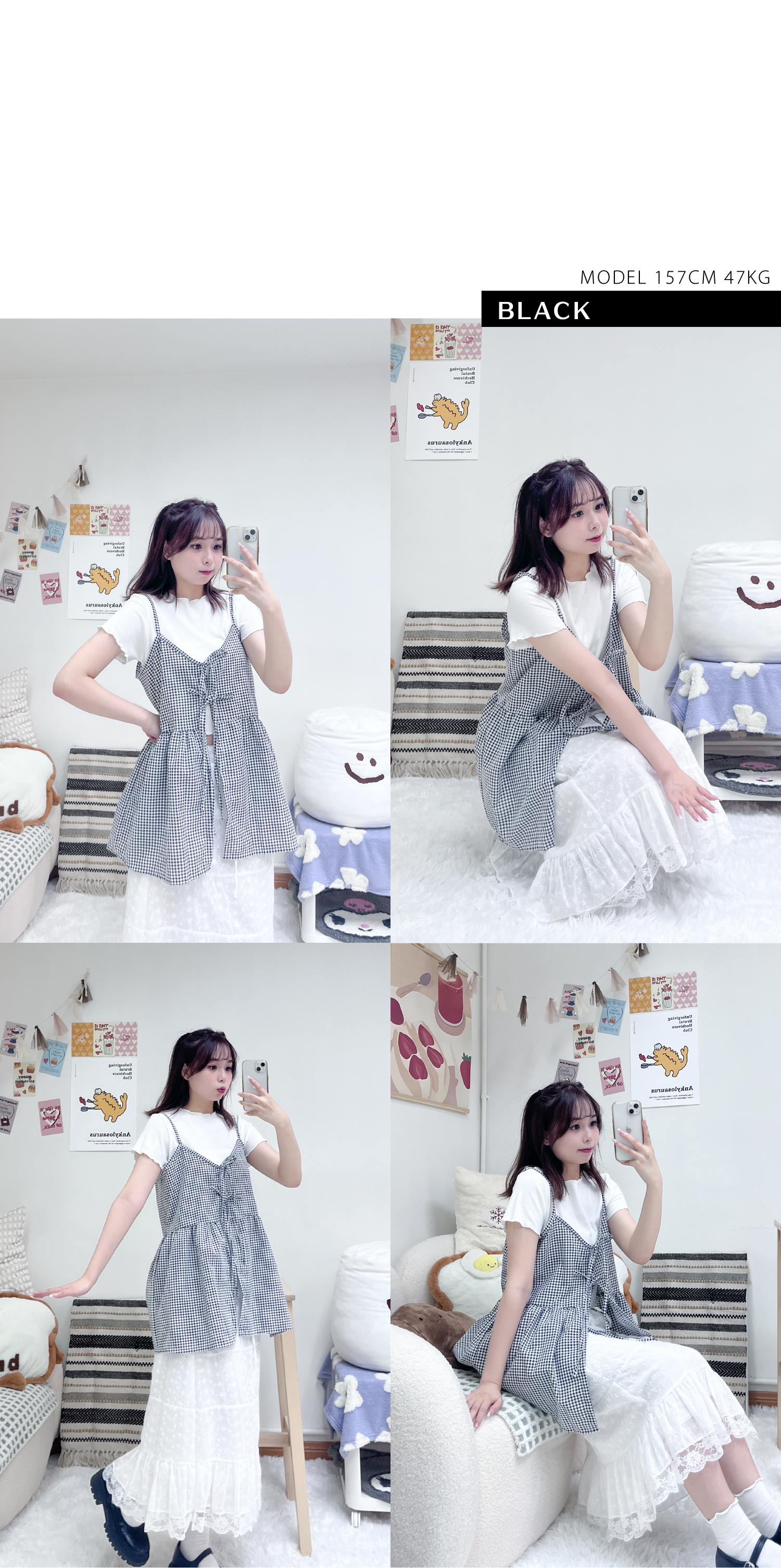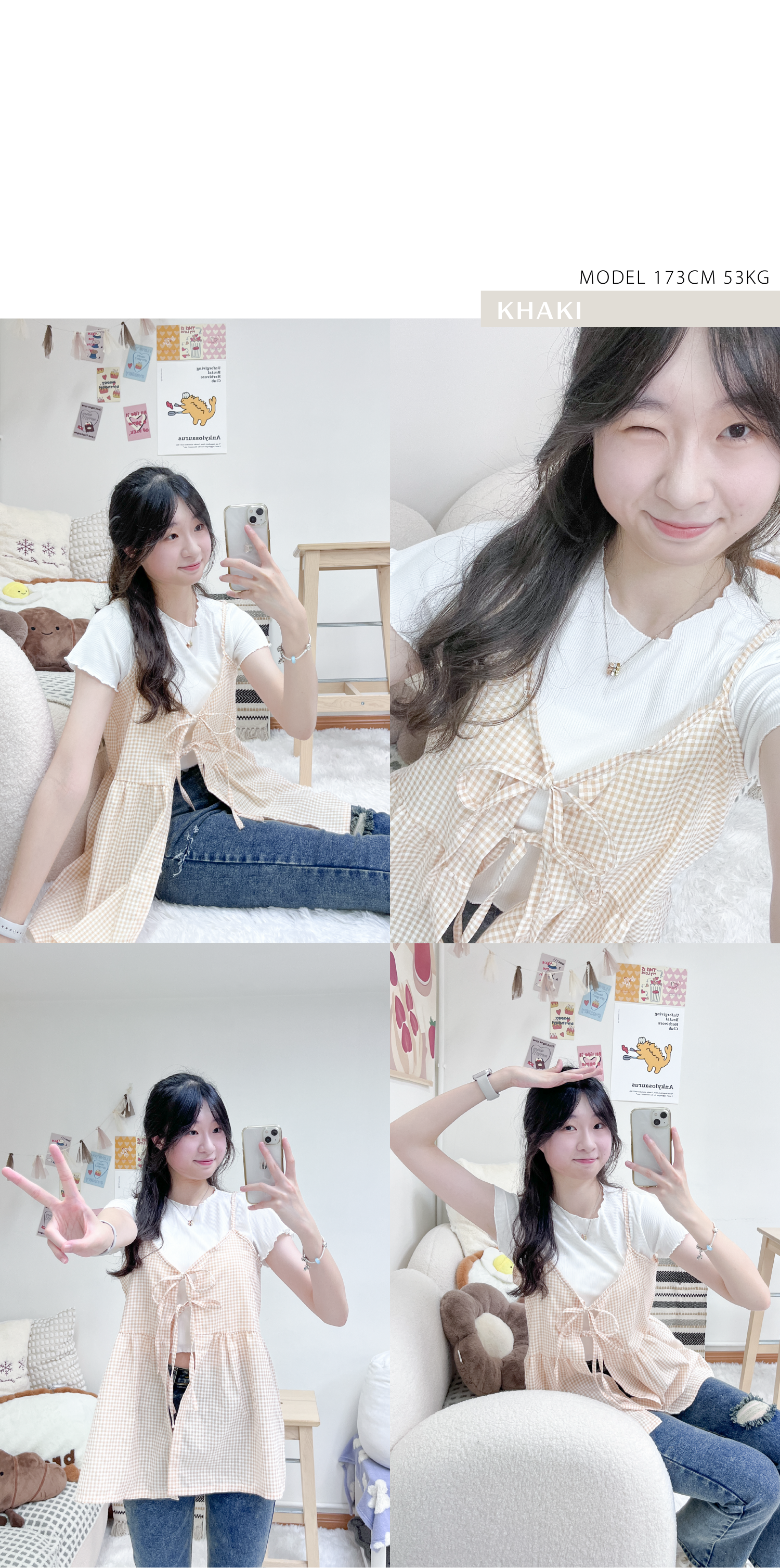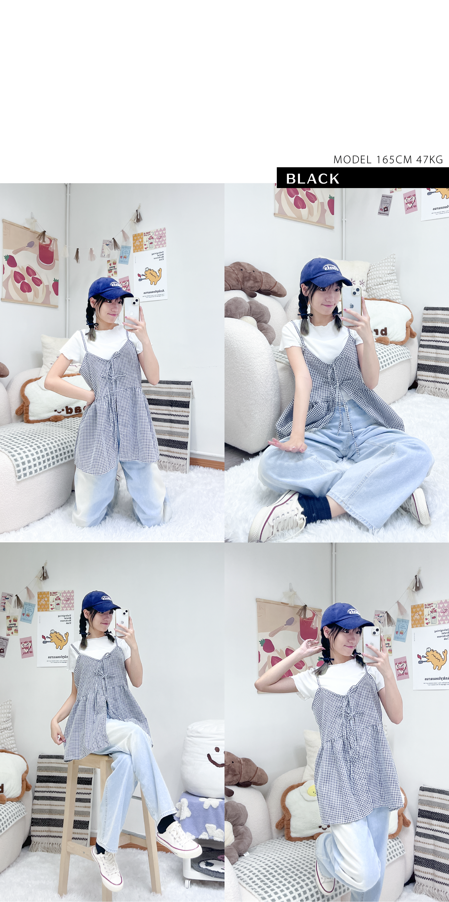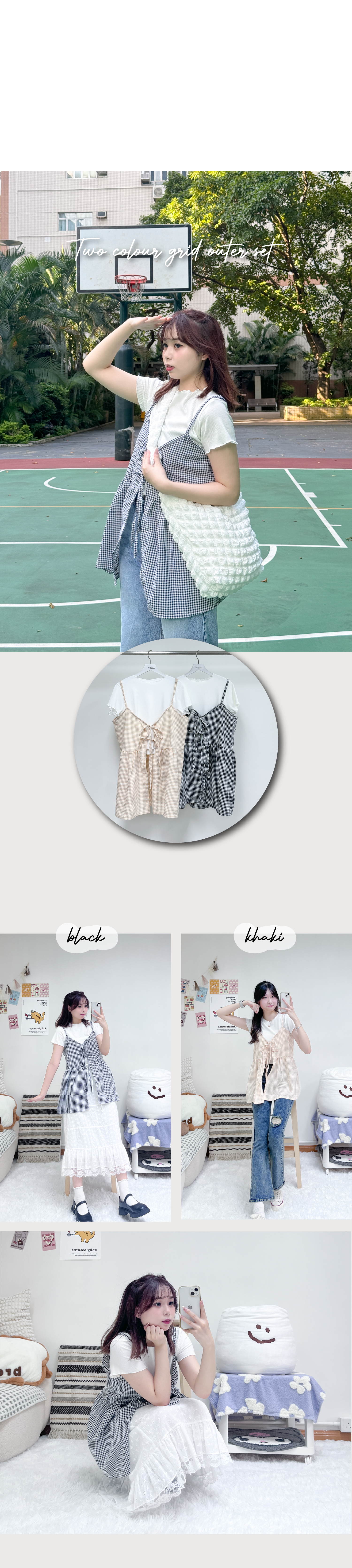 小清新綁帶格仔背心套裝