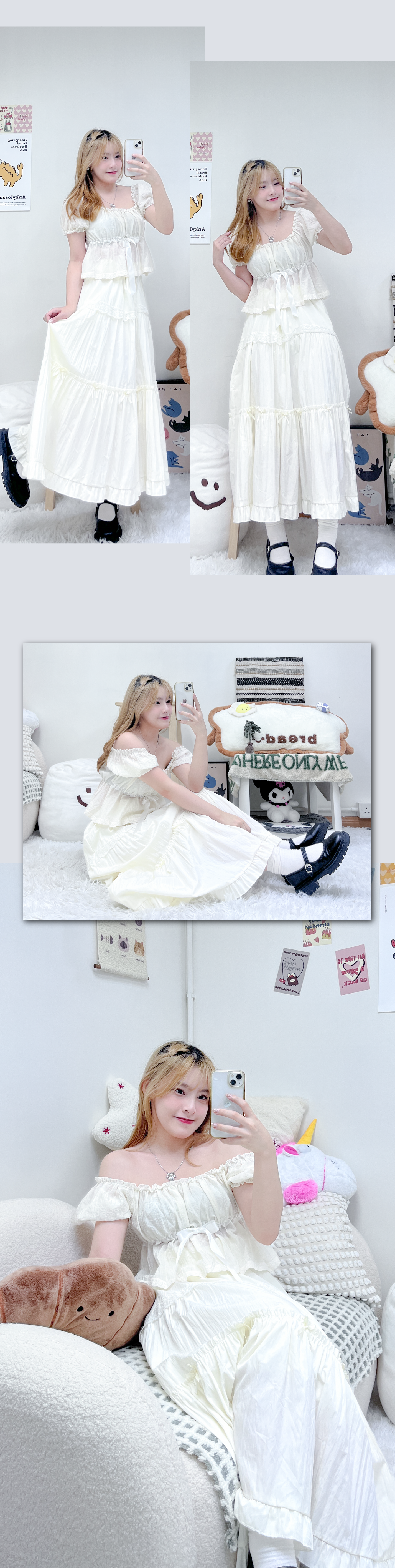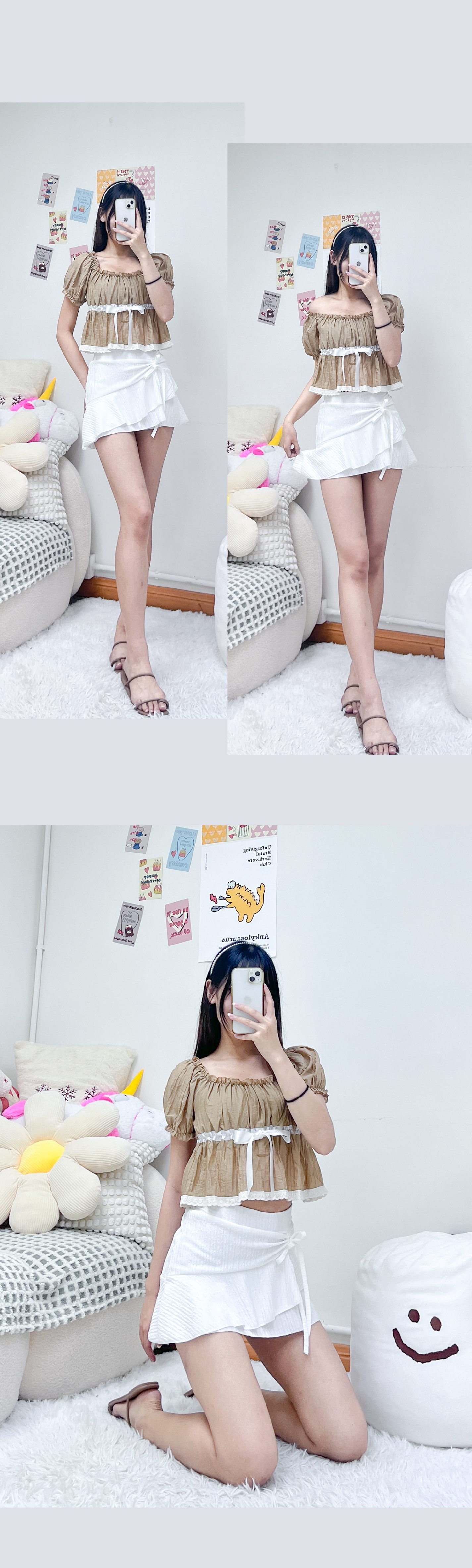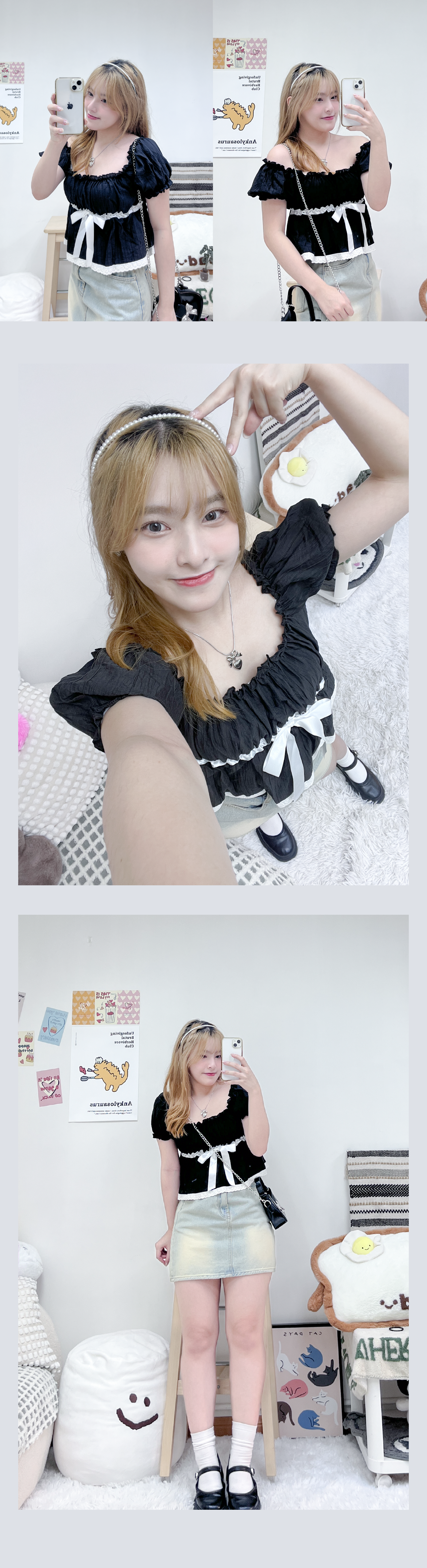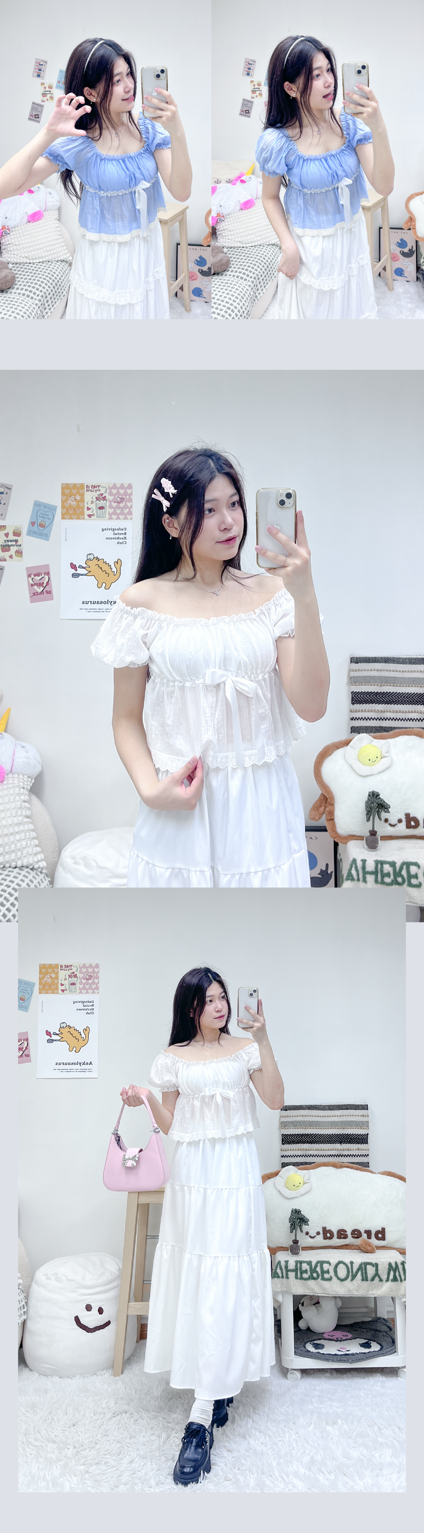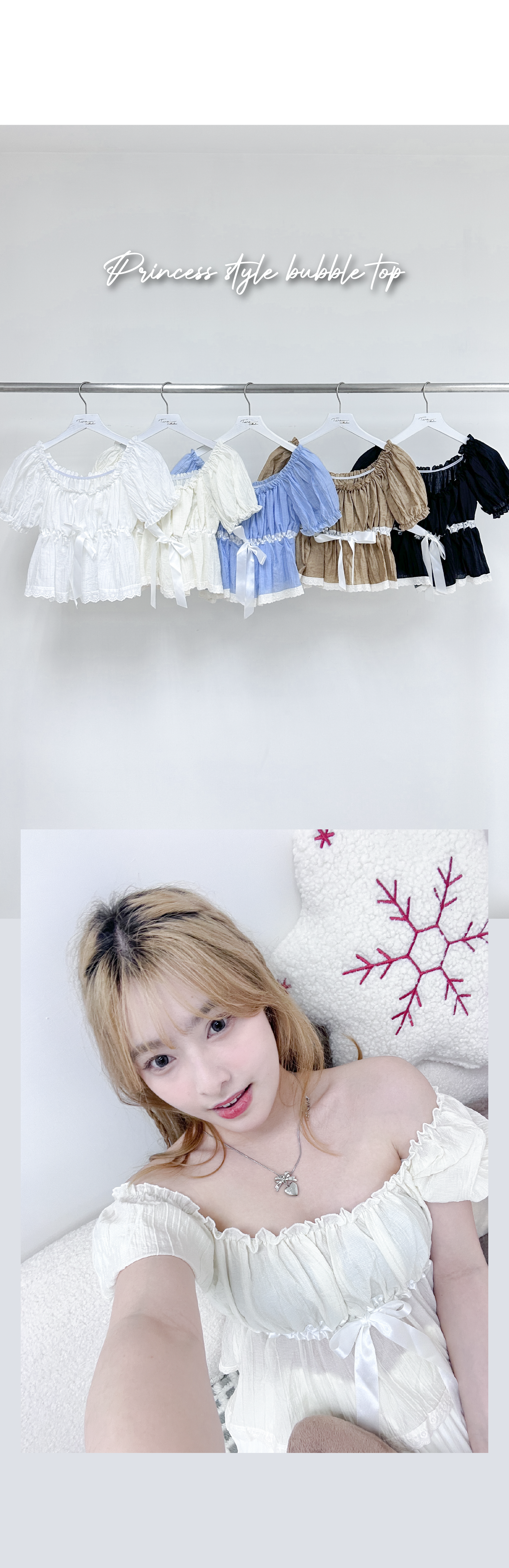 夏日公主風泡泡感綁帶上衣