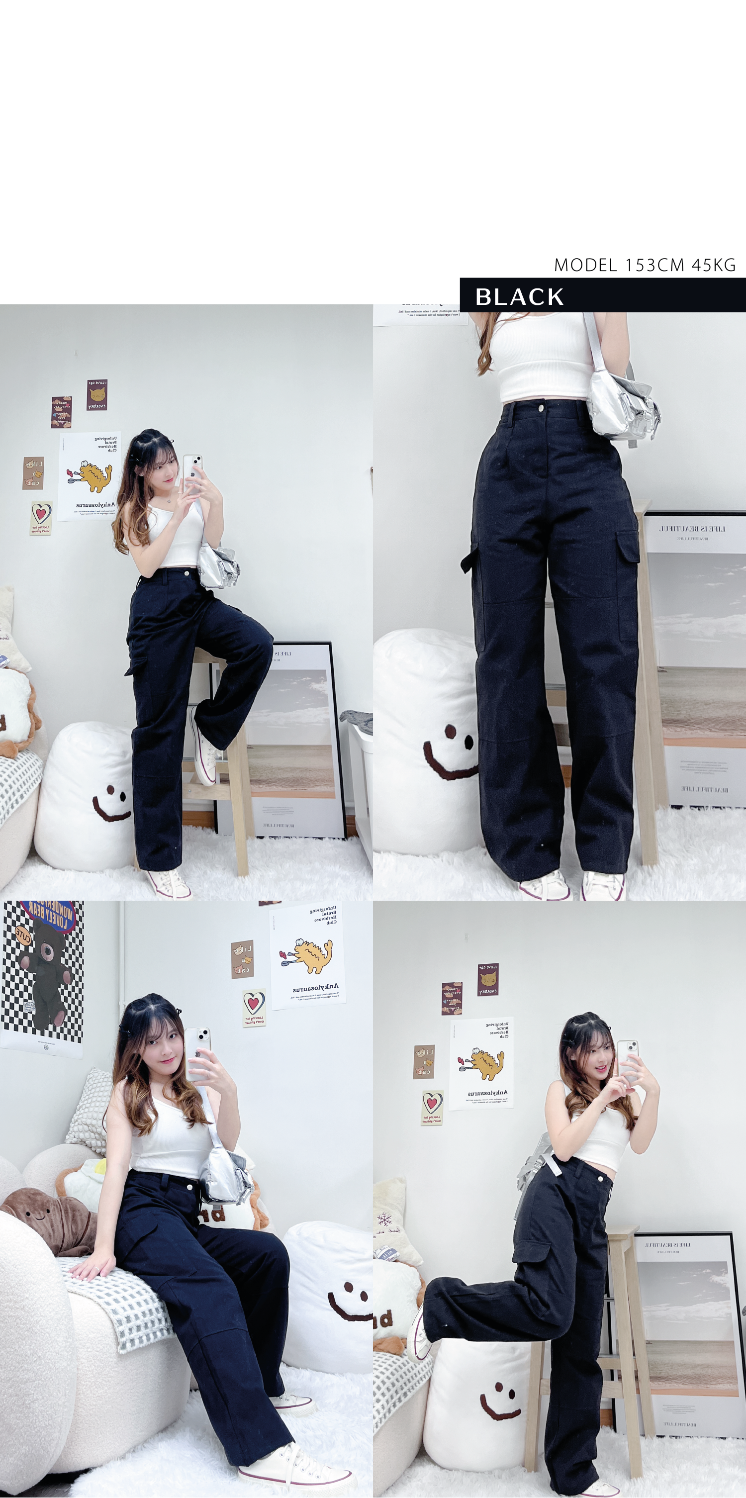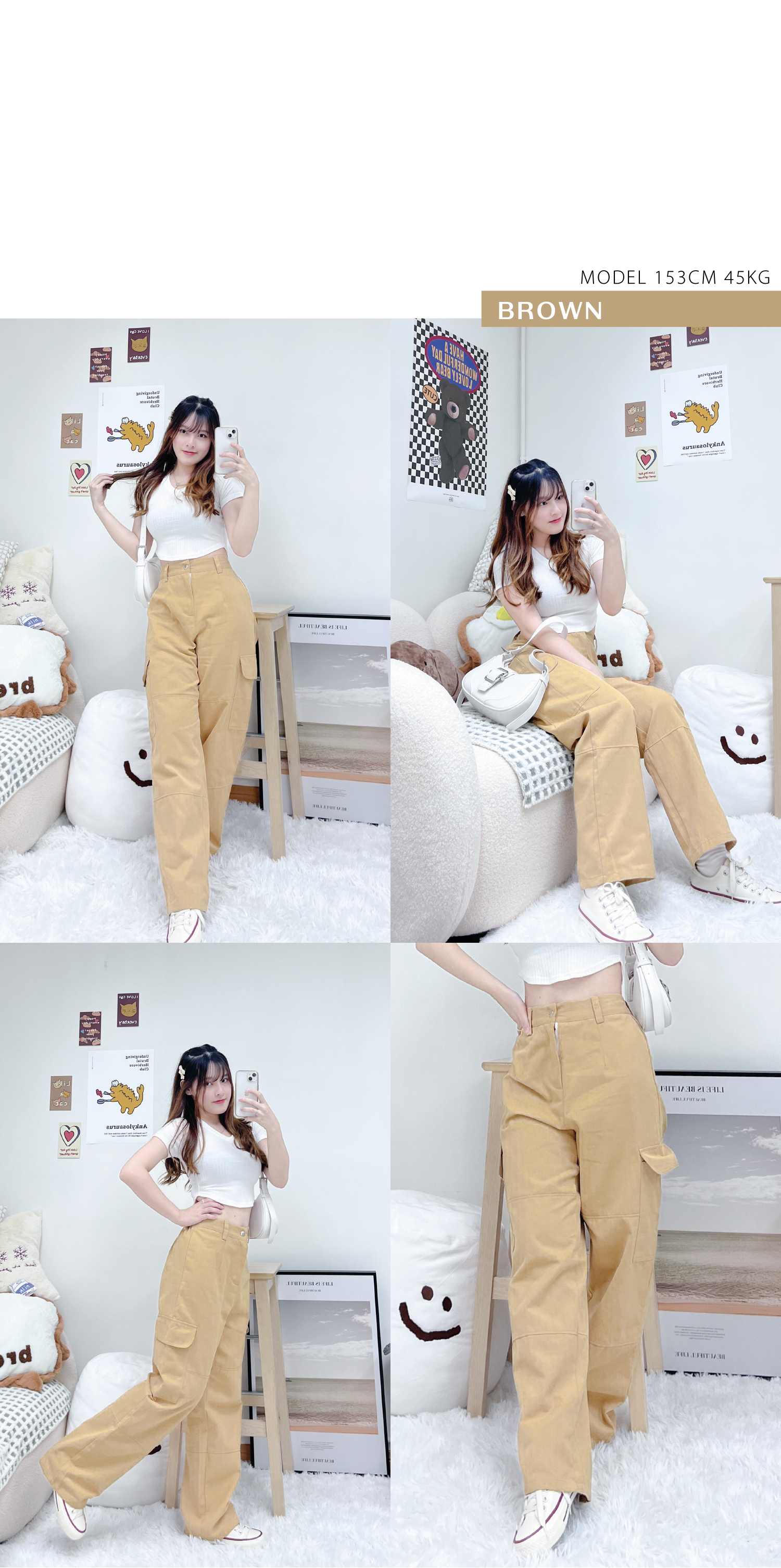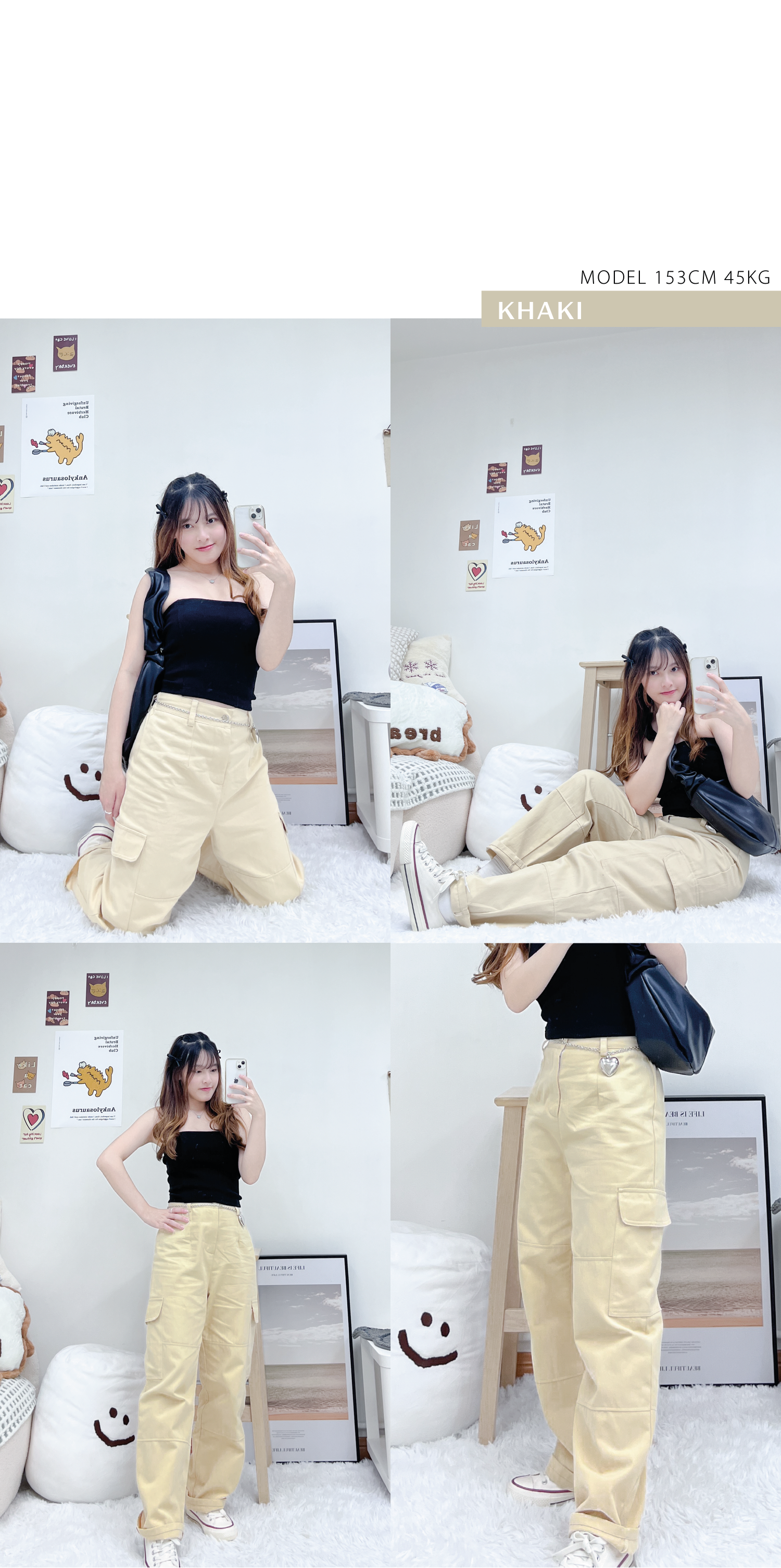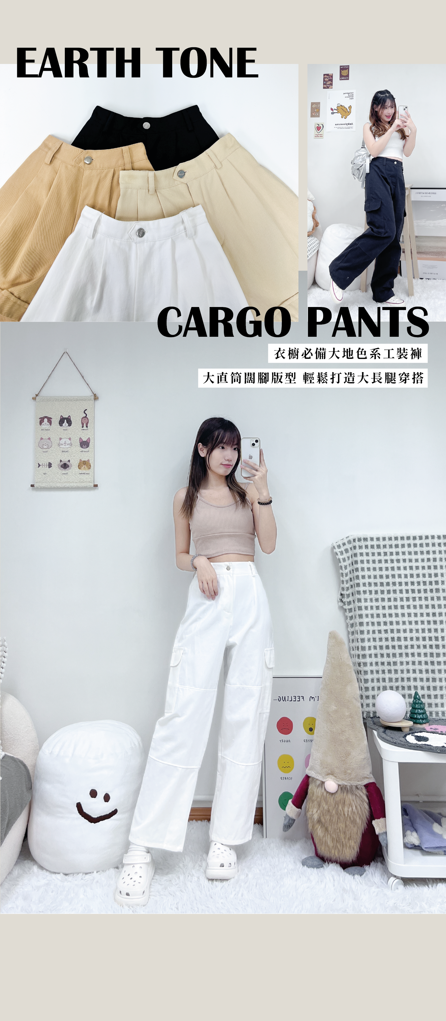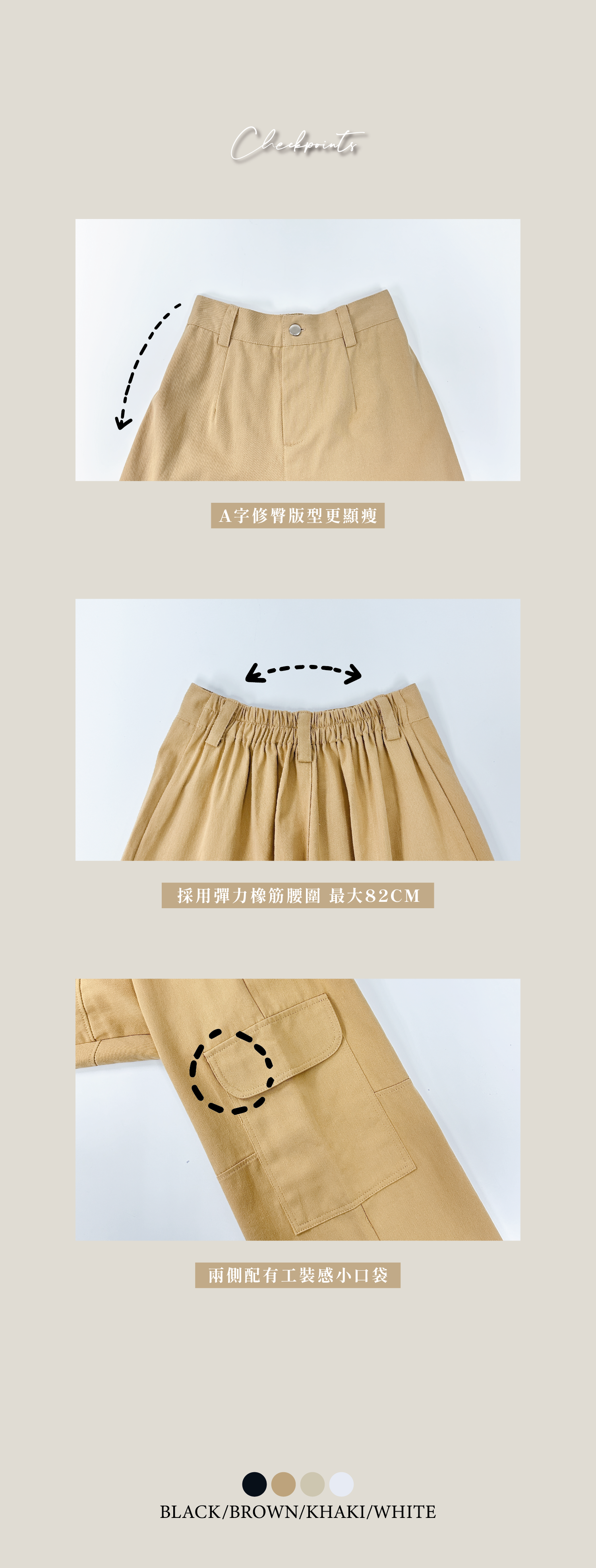 小型格口袋闊腳工裝褲