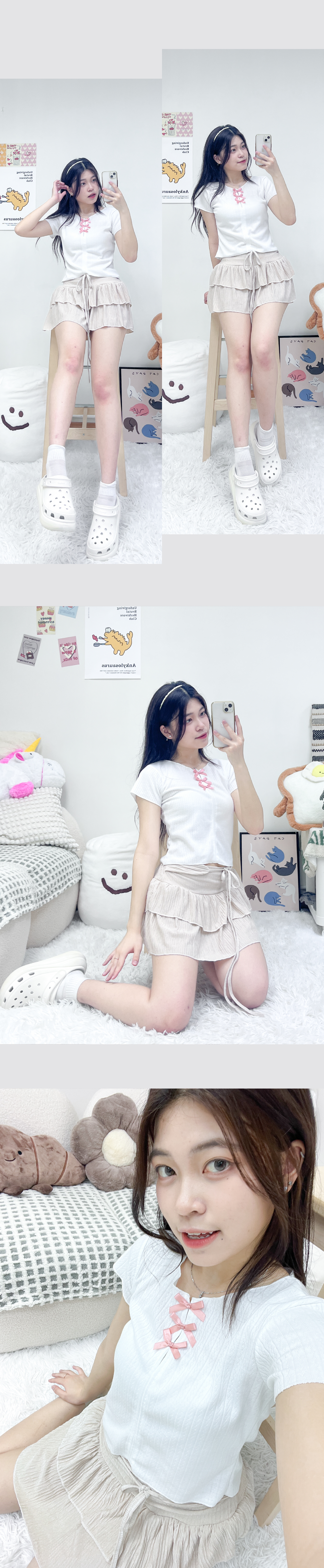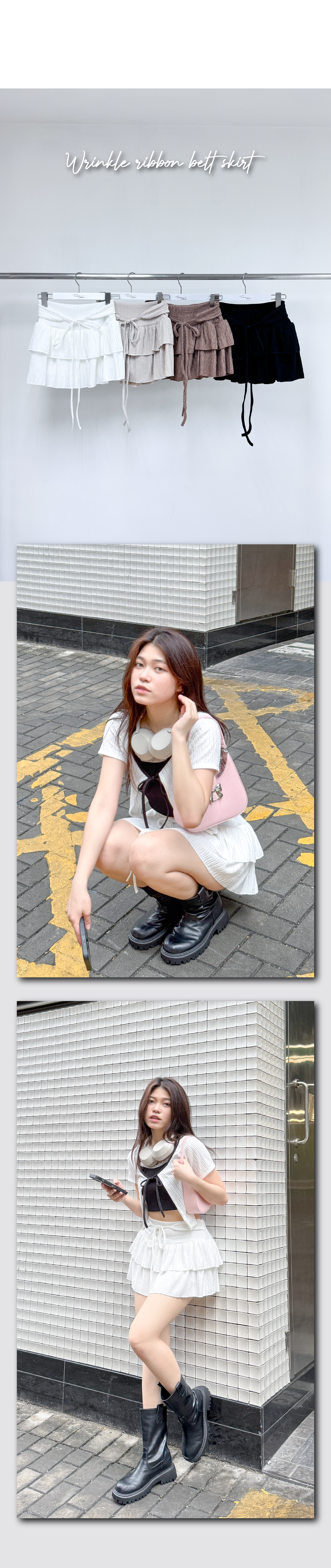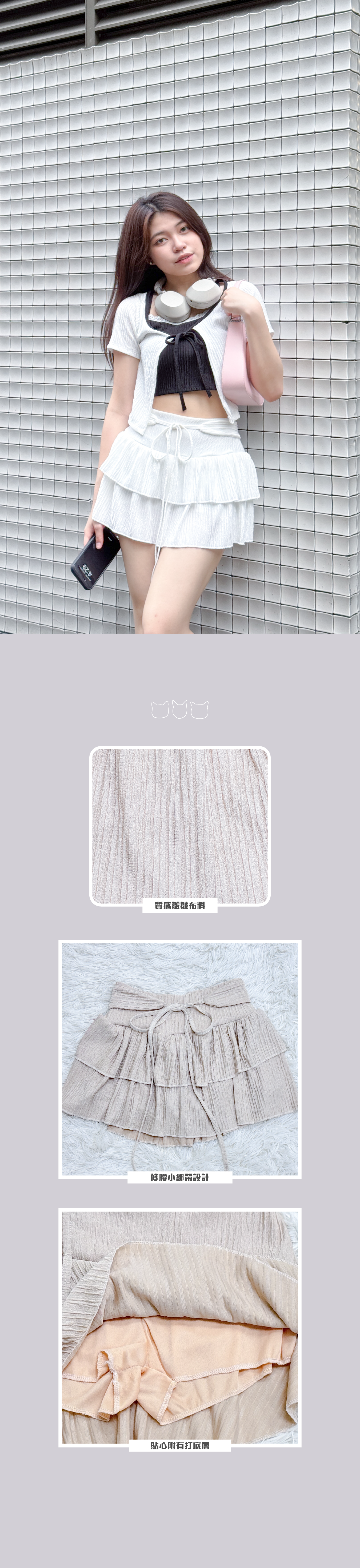 小質感皺皺修腰綁帶蛋糕短裙