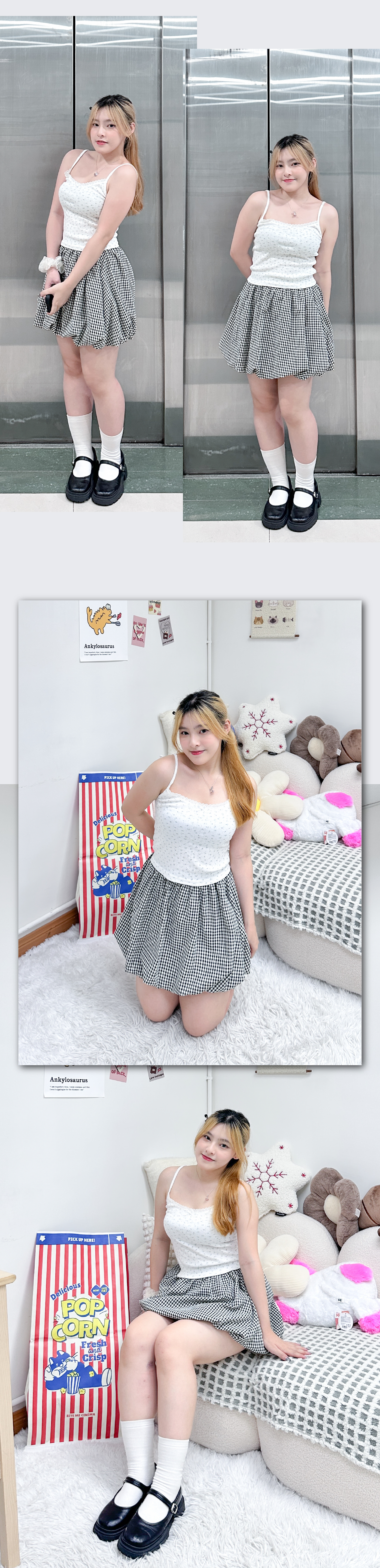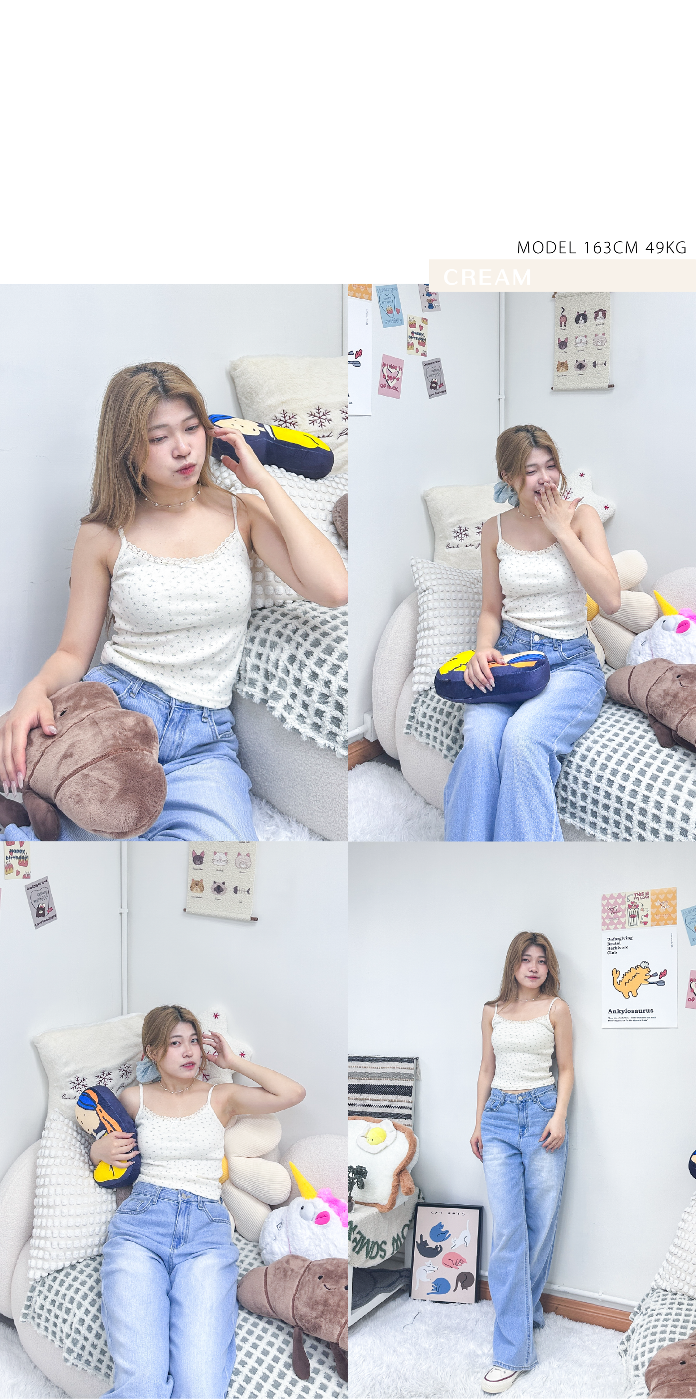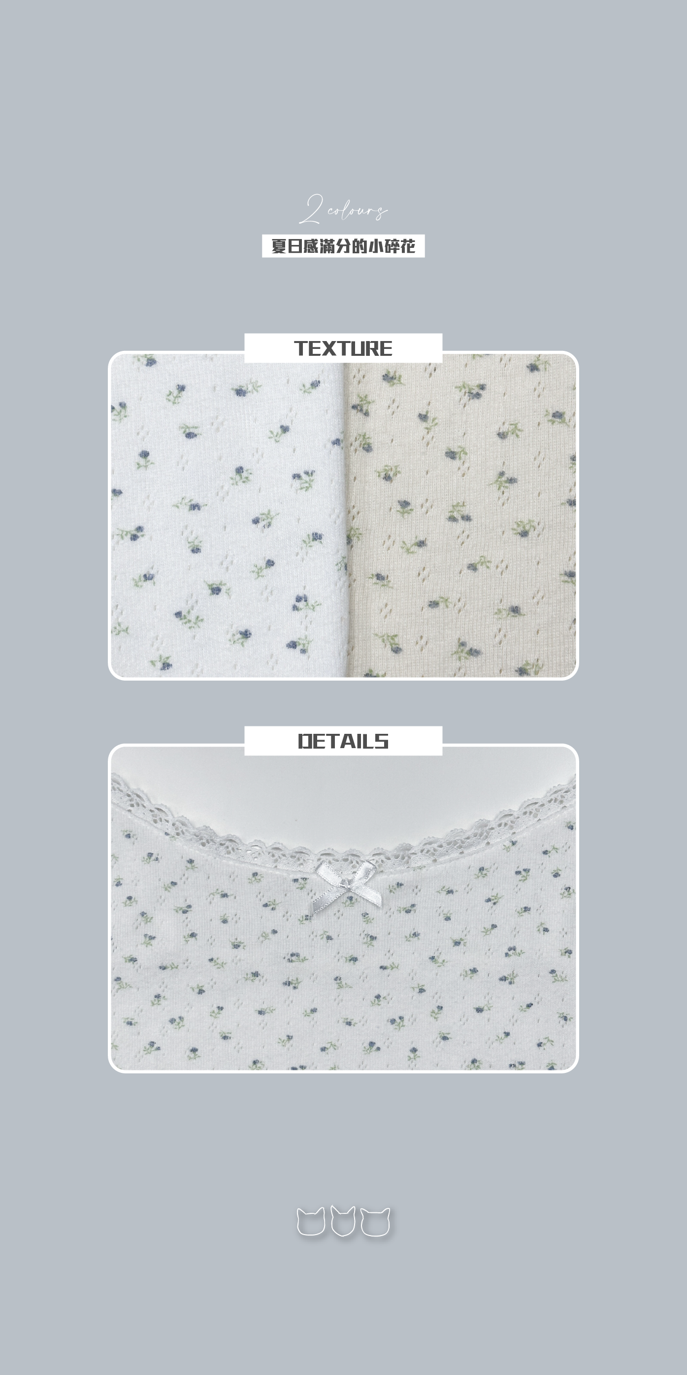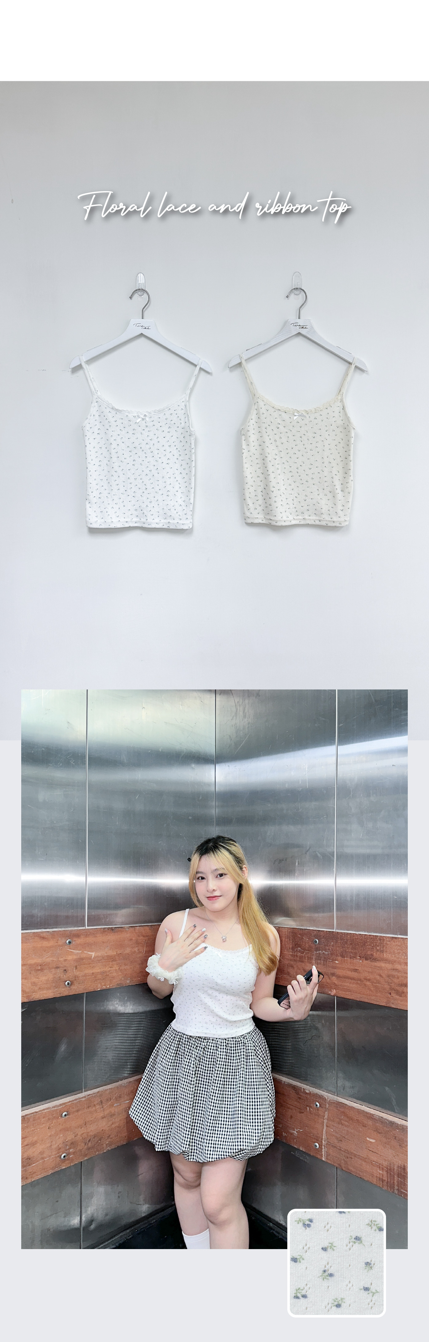 淡色調灰藍小碎花吊帶背心