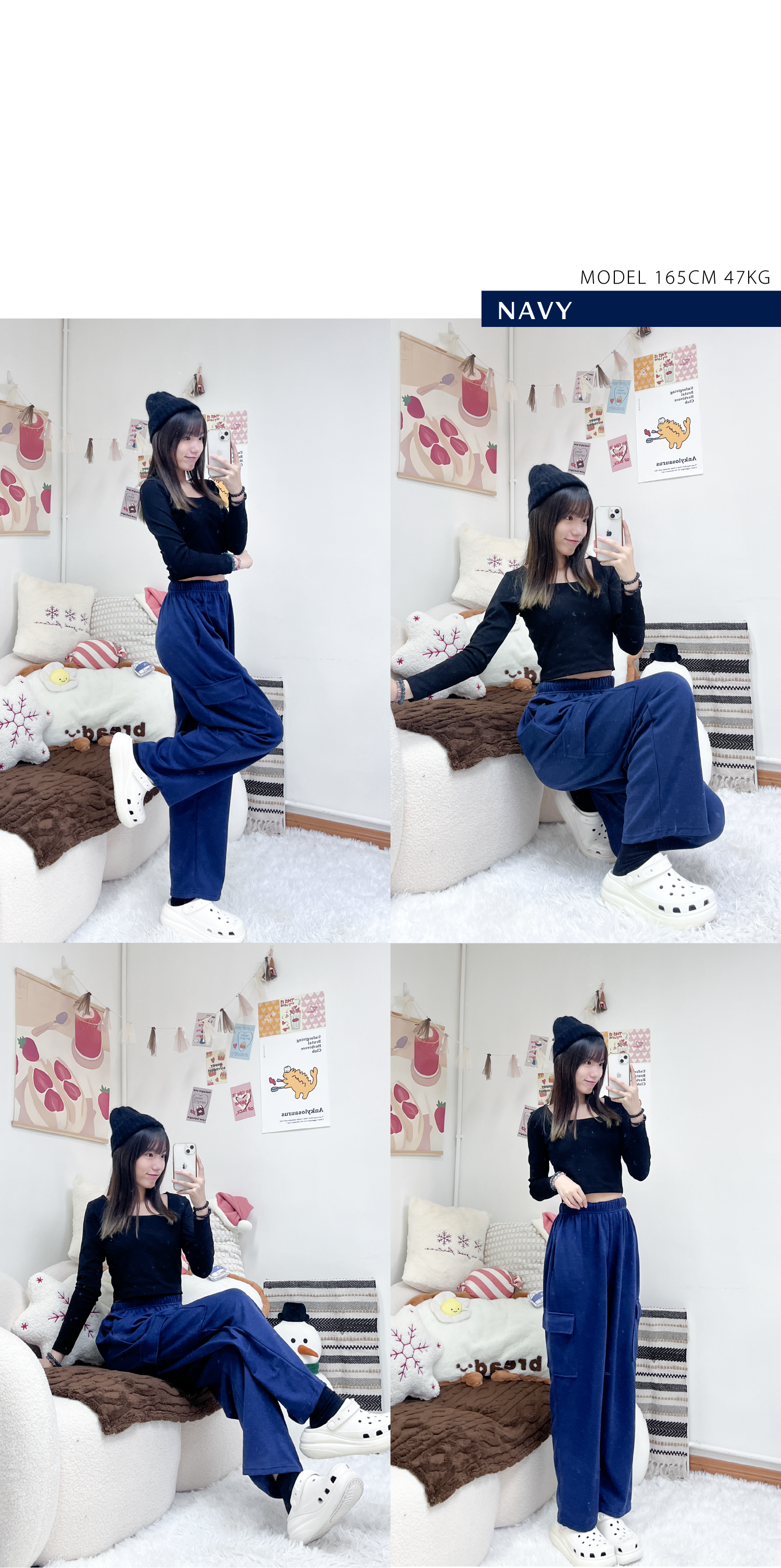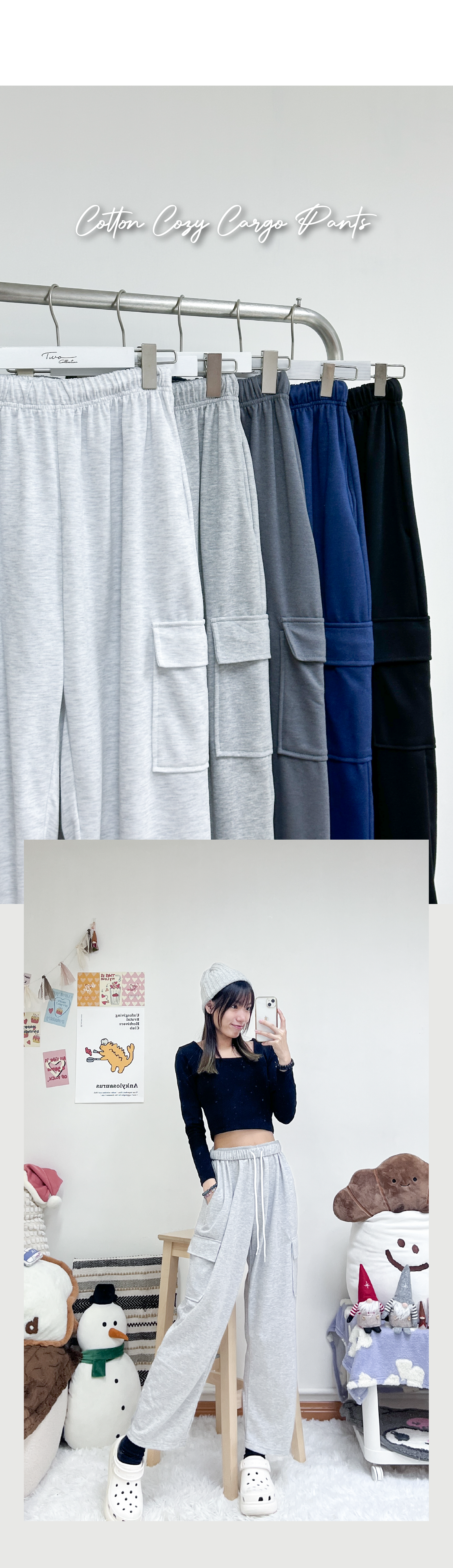 滿滿休閒感側口袋闊腳棉褲