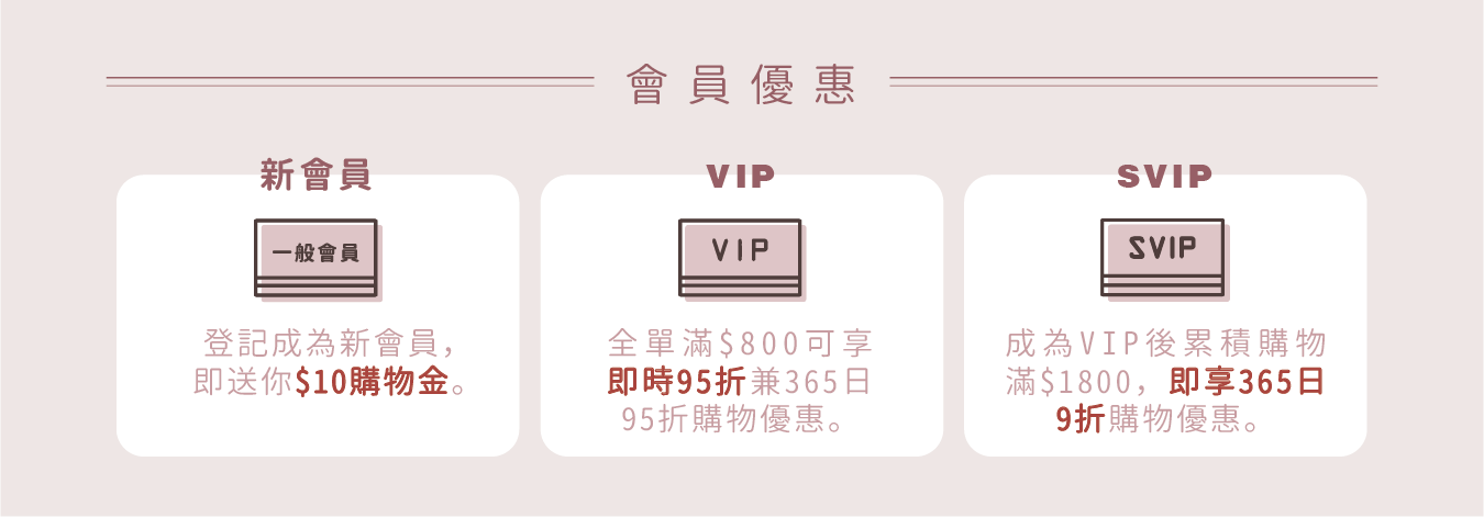 購物滿$800,成為本店VIP,即享全年95折優惠✨