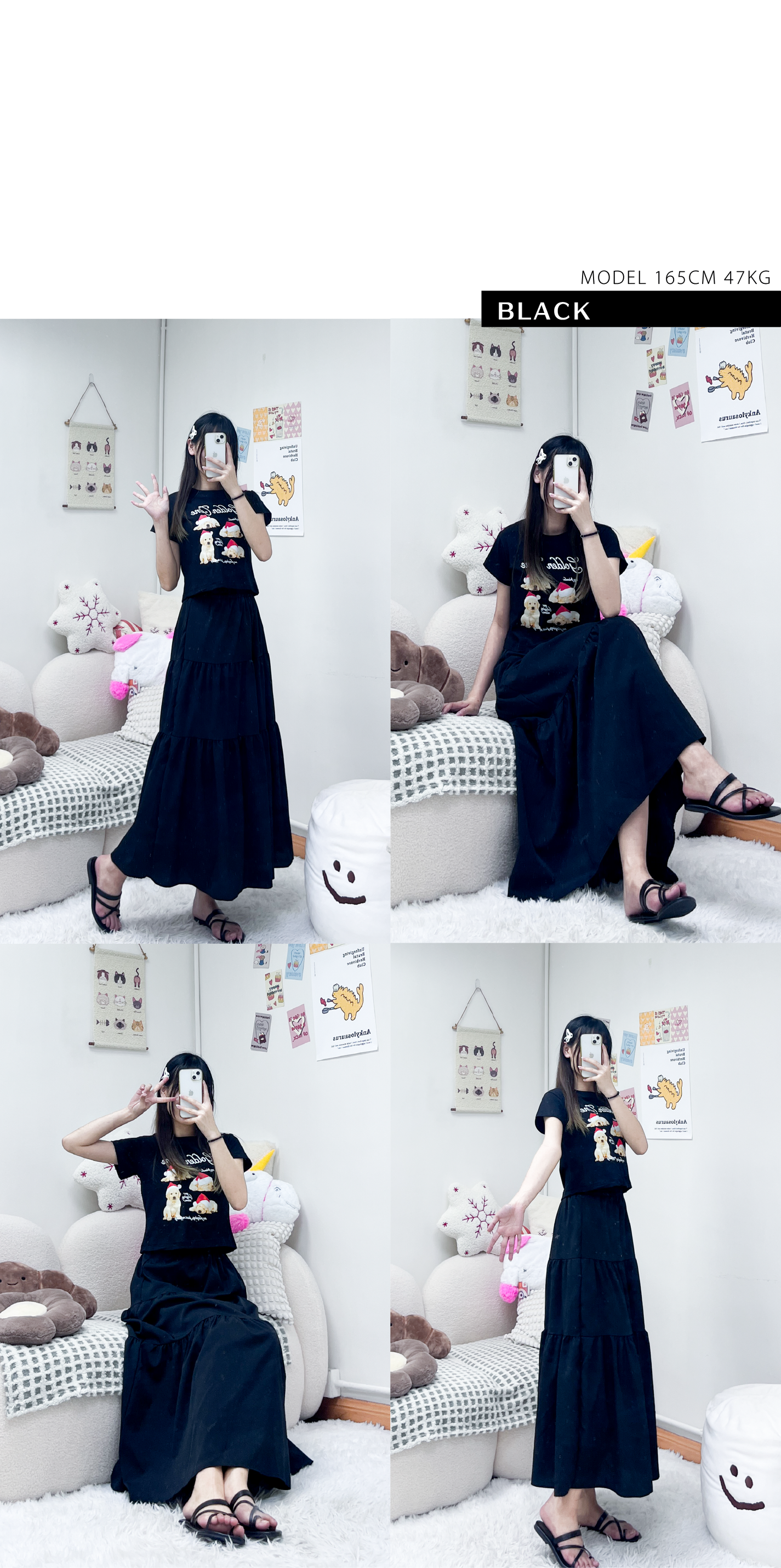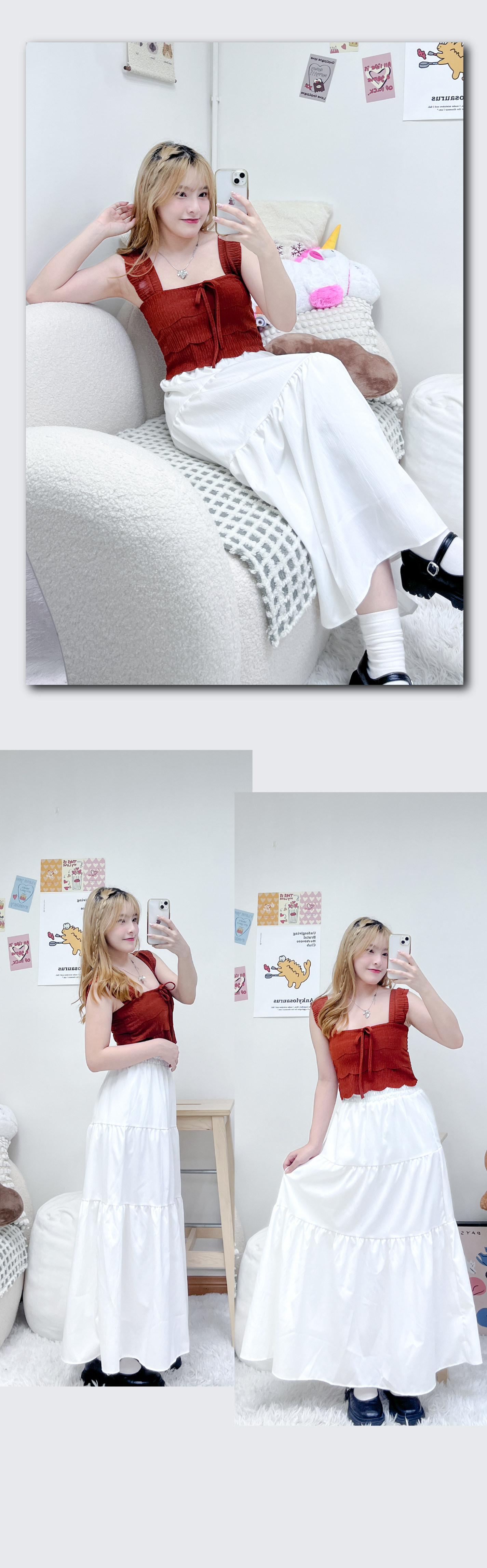 甜美蓬蓬感皺皺暗紋蛋糕長裙