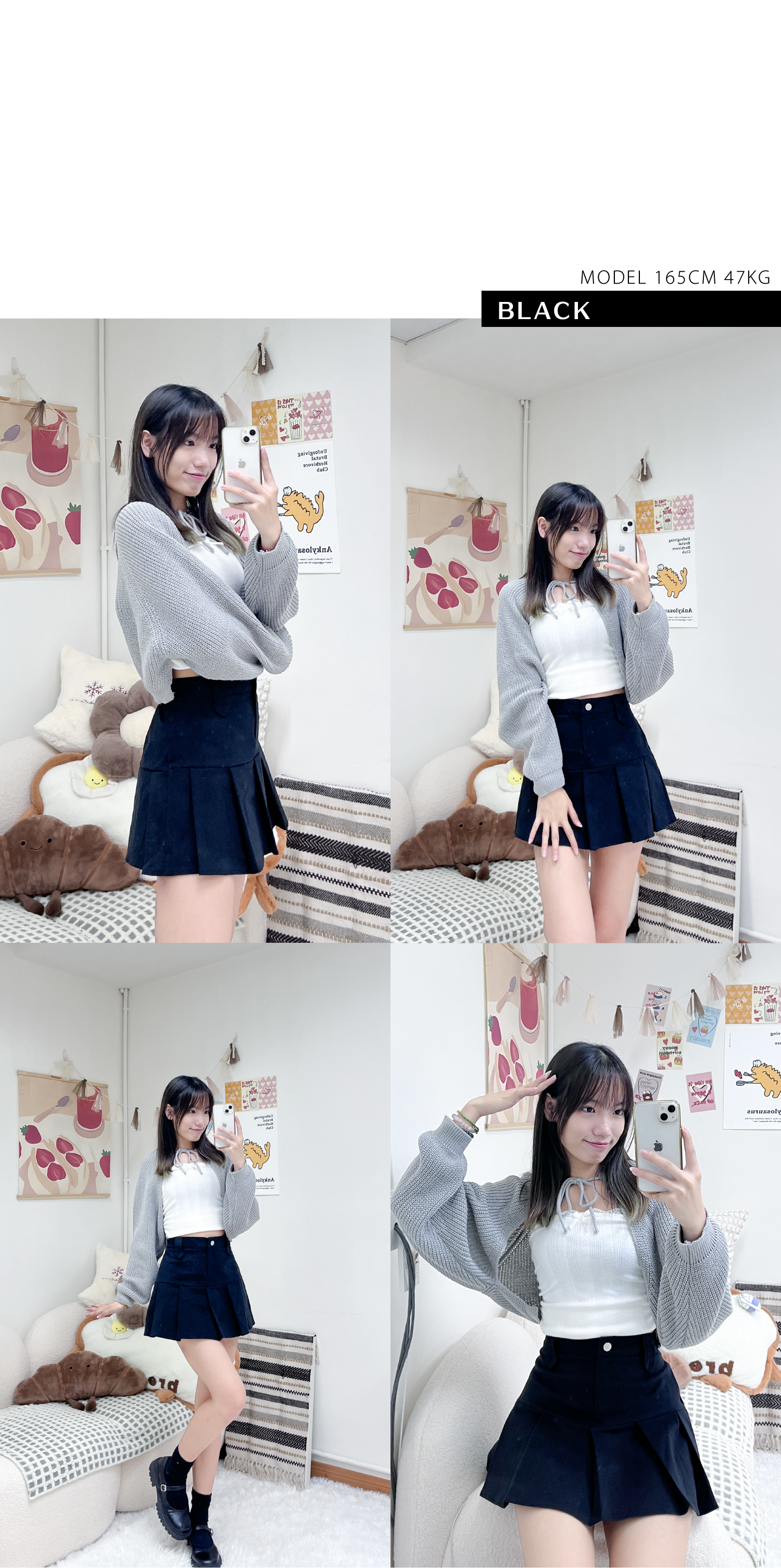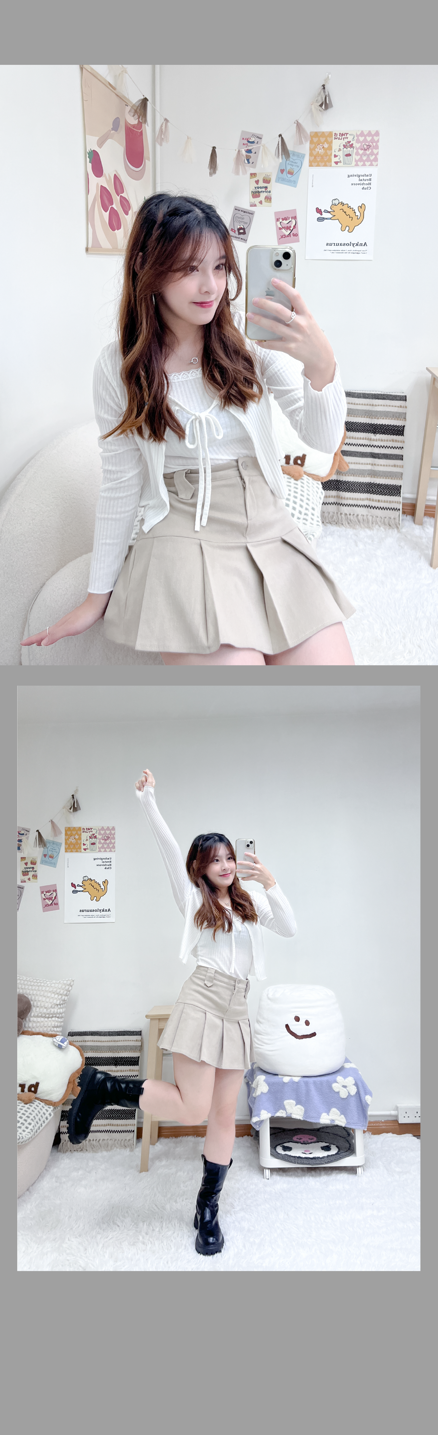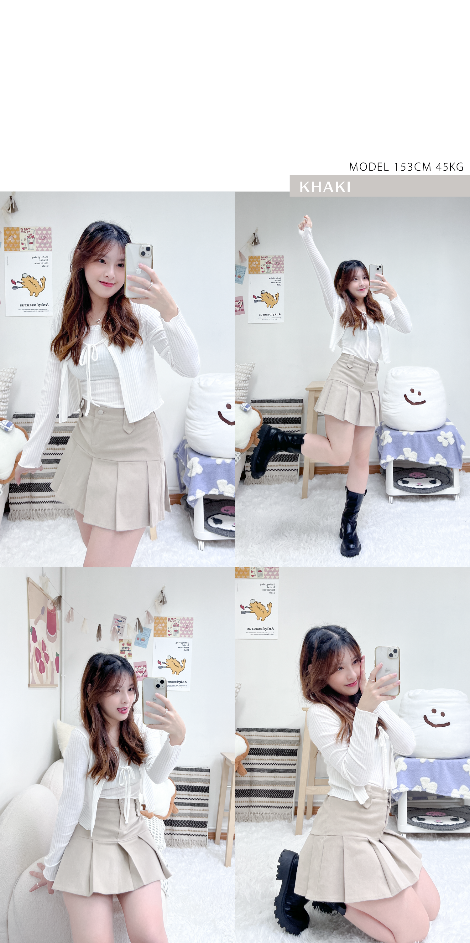 秋冬學院風小扣子百褶短裙
