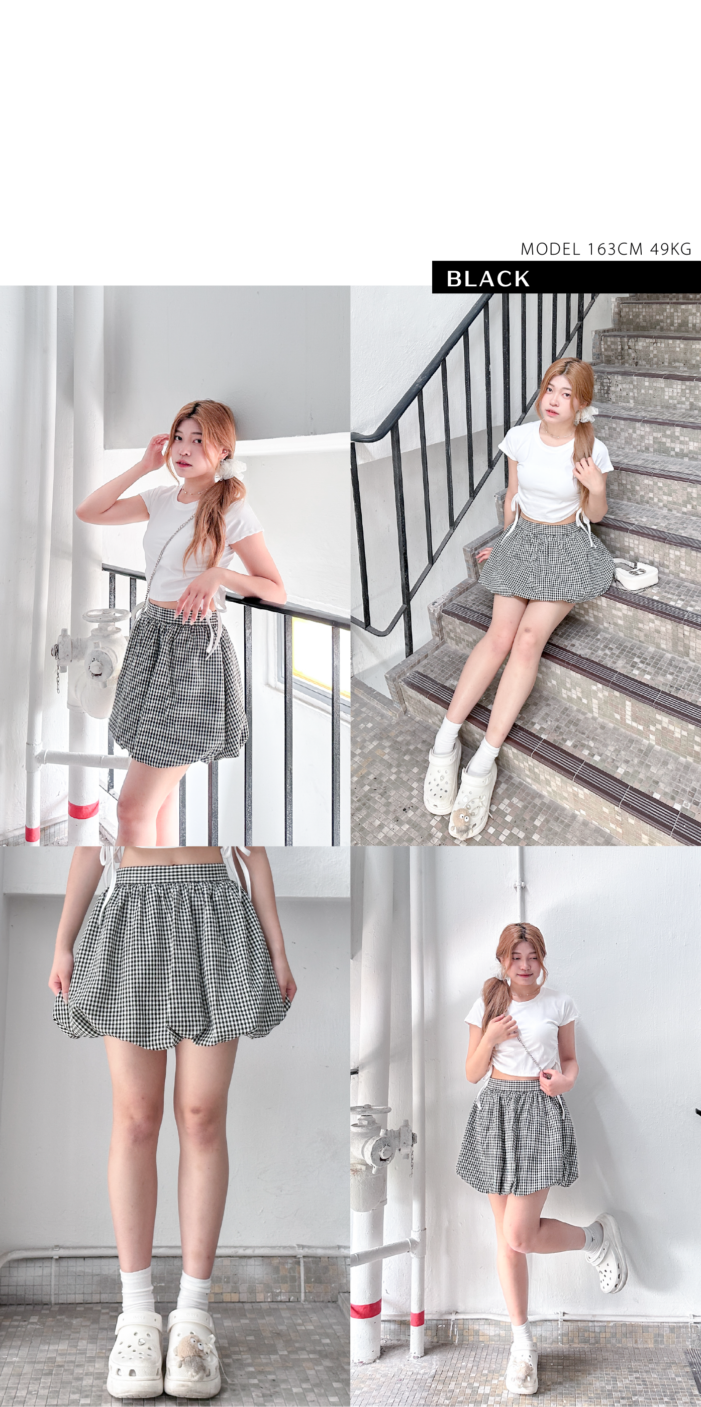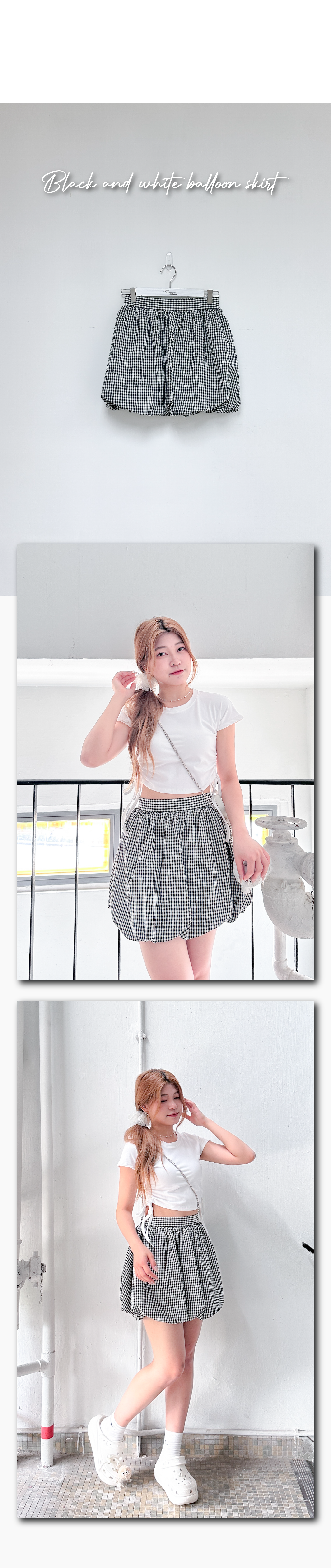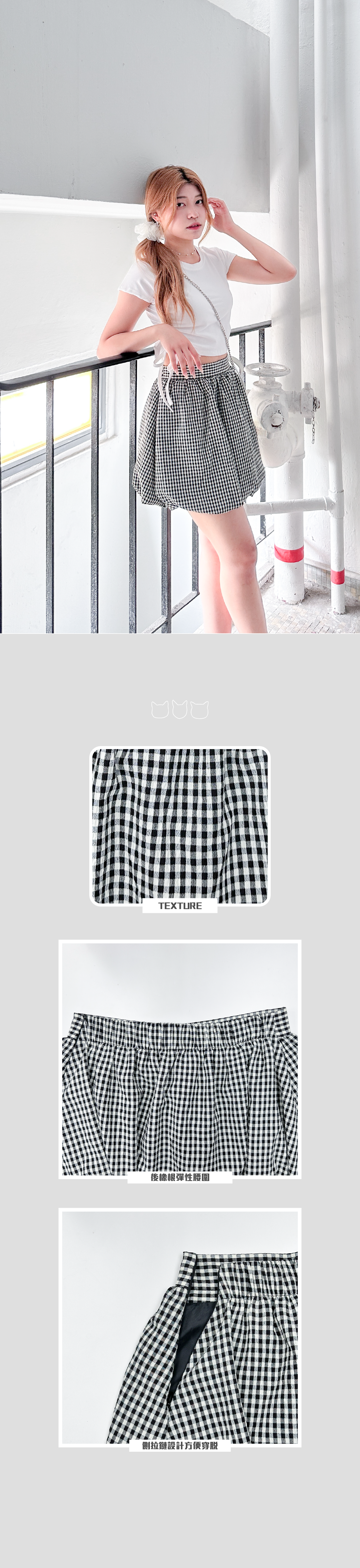 質感皺皺黑白格仔泡泡短裙