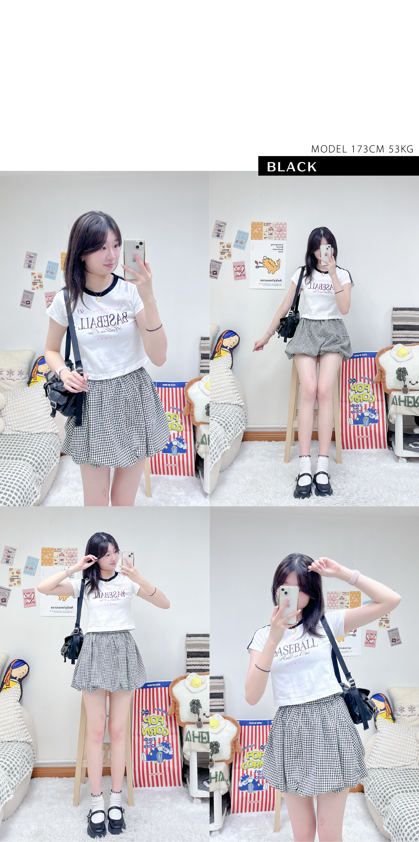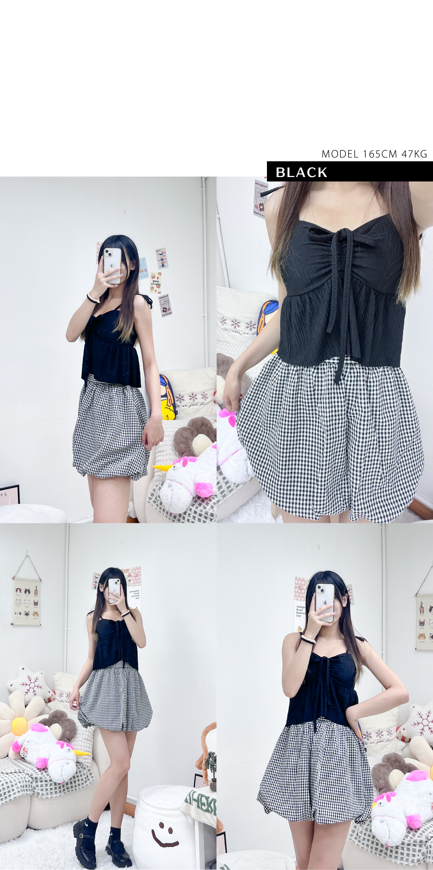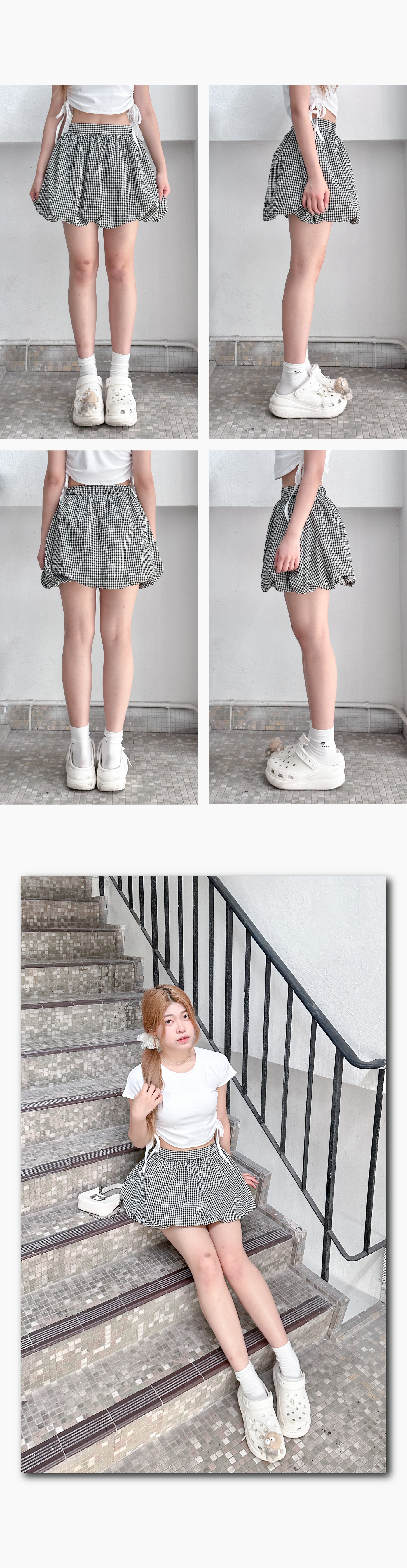 質感皺皺黑白格仔泡泡短裙