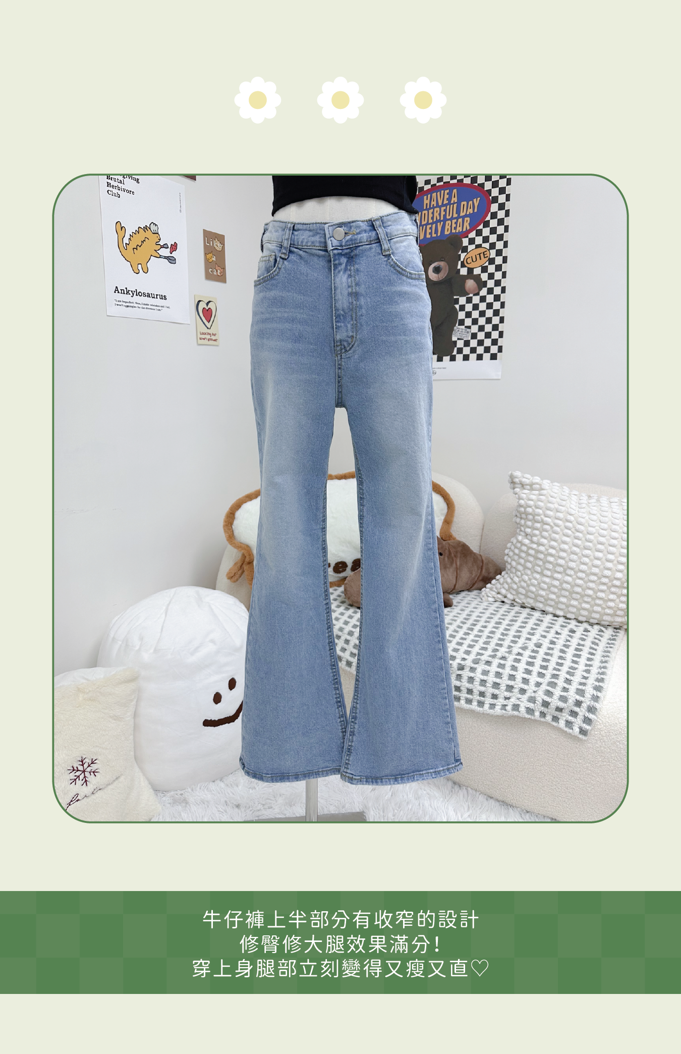 超修腿型洗水喇叭牛仔褲